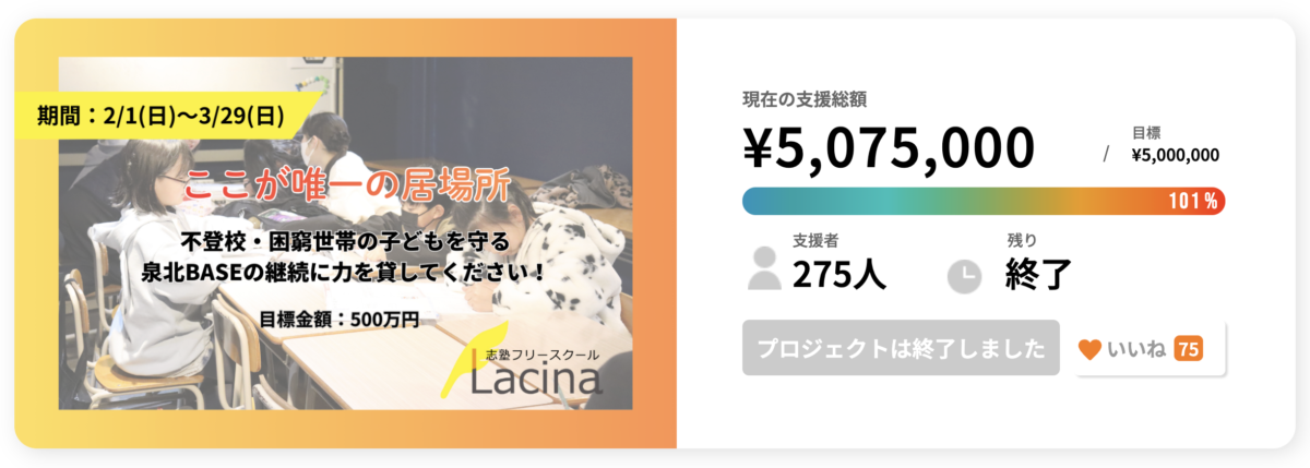 無事に目標を達成し、さらに想像を超えるご支援をいただくことができました。